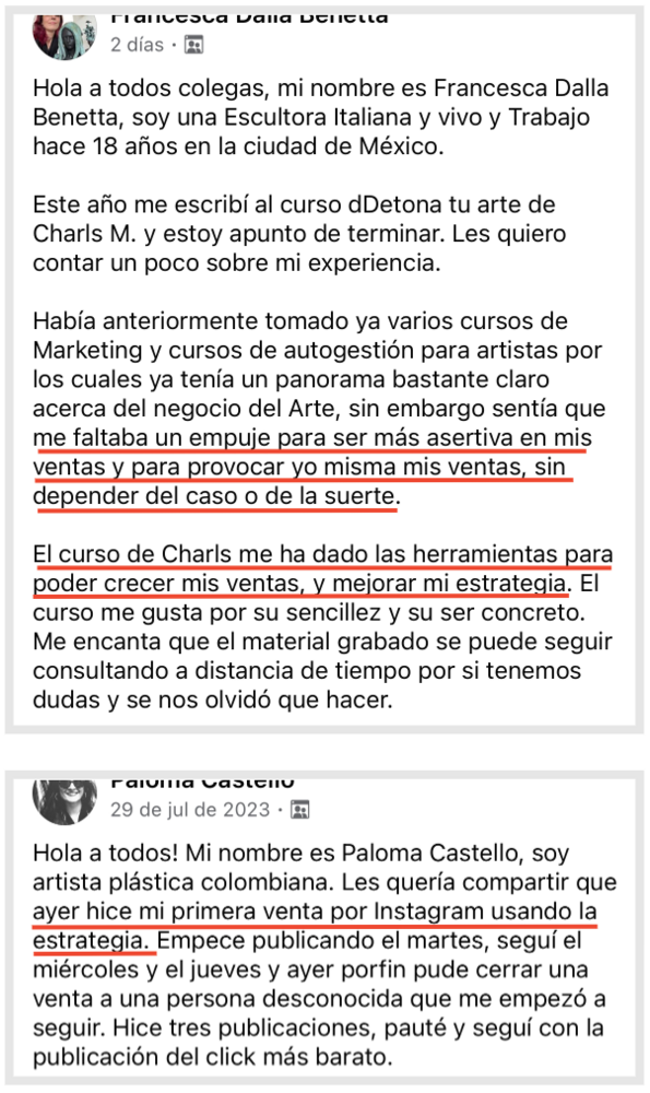 Ha ayudado a diversos Artistas como Escultores, Pintores, Tatuadores y Fotógrafos a generar más de $15,000 USD en ventas de obra gracias a su Modelo de Ventas Minimalista en IG.